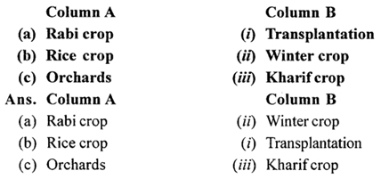 Name the two main crop seasons of India. Give three examples of the crops grown during each season.